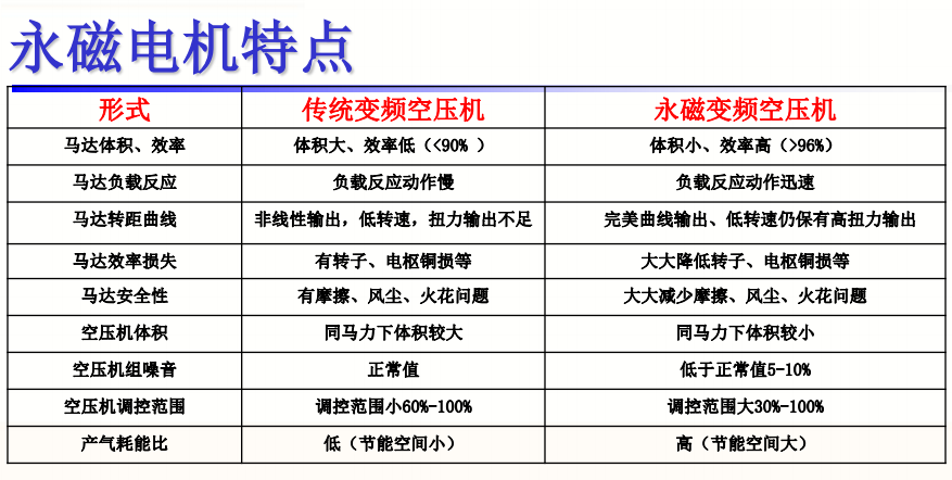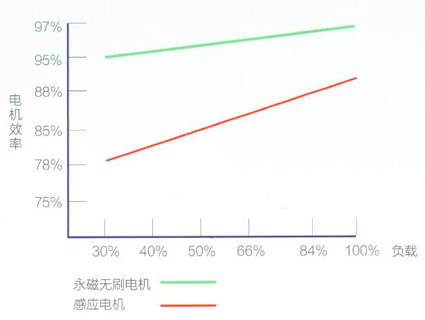 漢鐘AM系列在任何負載下始終保持96%以上的效率;相比普通電機節能38%以上,比感應式變頻電機更節能15%以上,比一般感應變頻電機的轉子鐵損電樞銅損等固定損失減少了30%、效率當然會更高。