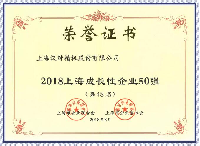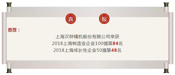 漢鐘精機榮獲“2018上海制造業企業100強”、“2018上海成長性企業50強”稱號